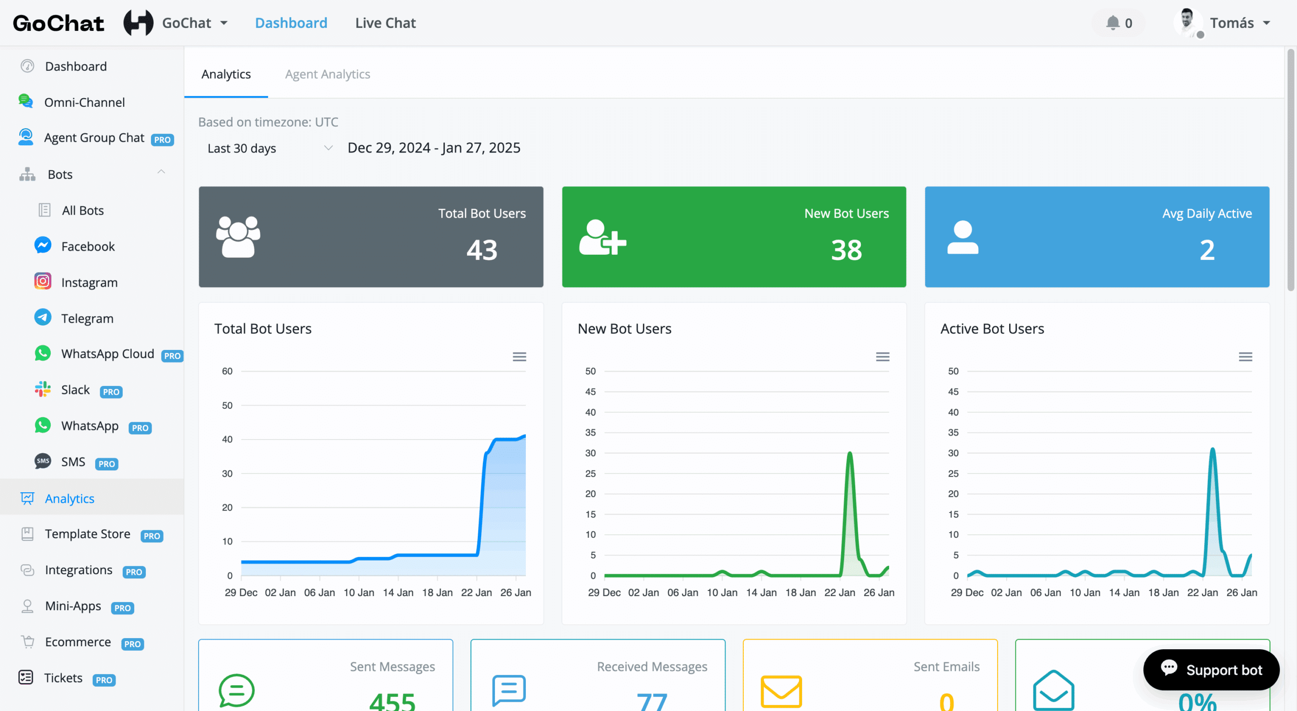 GoChat está diseñado para escalar con su negocio, de modo que puede acomodar fácilmente más usuarios y clientes a medida que su negocio crece.