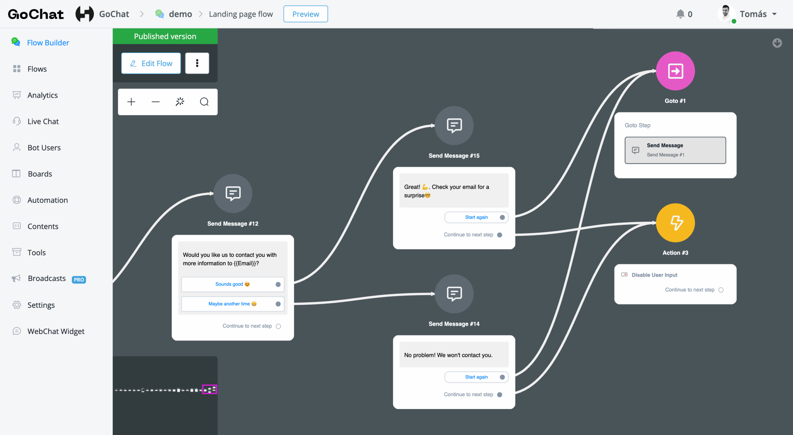 Diseñe flujos conversacionales sin esfuerzo con nuestro constructor visual intuitivo, sin necesidad de codificación.